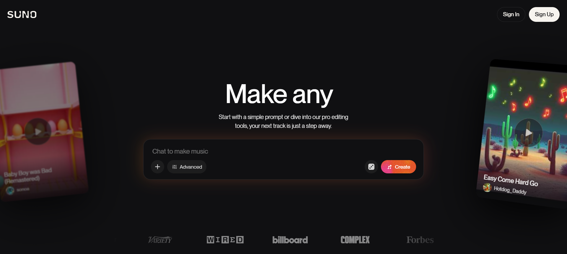 Suno menggabungkan text-to-music, text-to-lyrics, dan voice synthesis sehingga hasilnya terdengar profesional.
