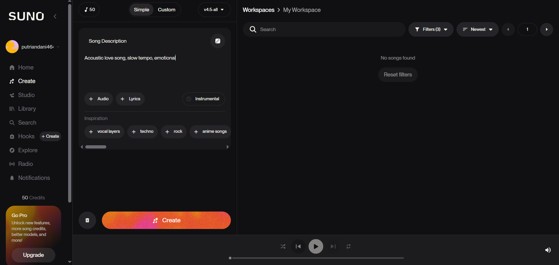 Kamu bisa menulis lirik sendiri atau biarkan AI membuatkannya.